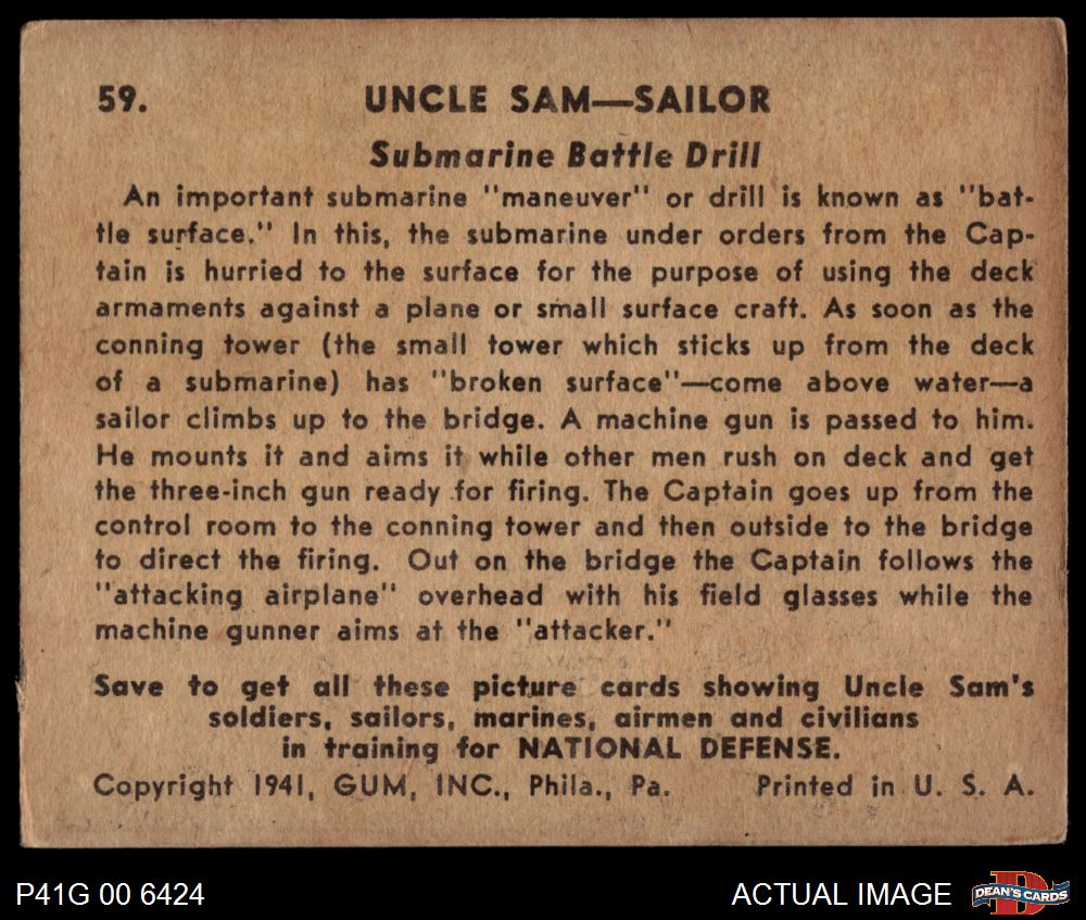 1941 Uncle Sam #59  Submarine Battle Drill Front Thumbnail