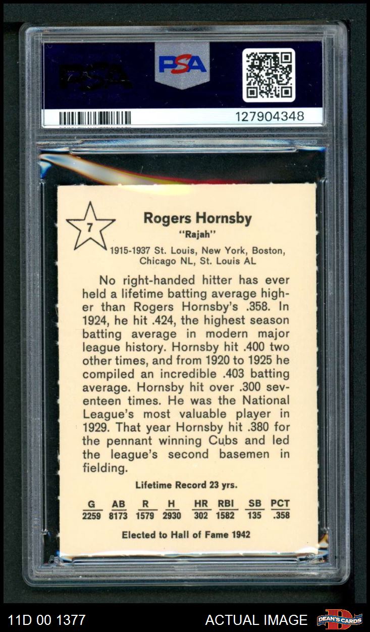 1961 Golden Press #7 Rogers Hornsby PSA 6 - EX/MT