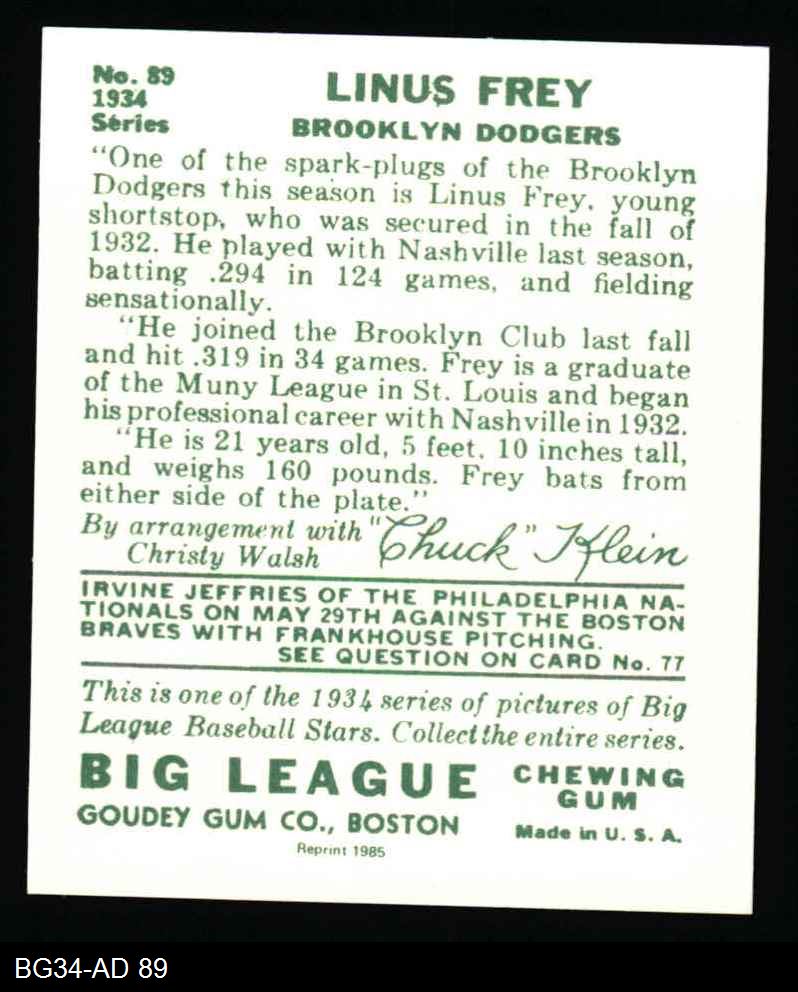 1934 Goudey Reprint #89 Lonnie Frey 8 - NM/MT