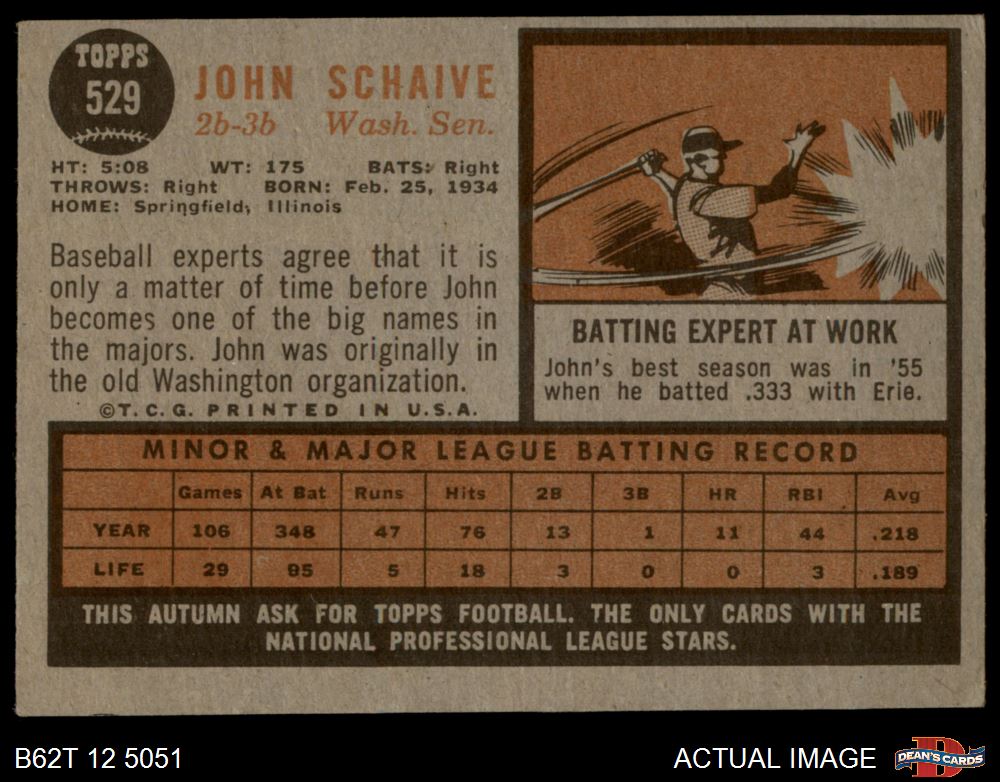 1962 Topps #529 John Schaive