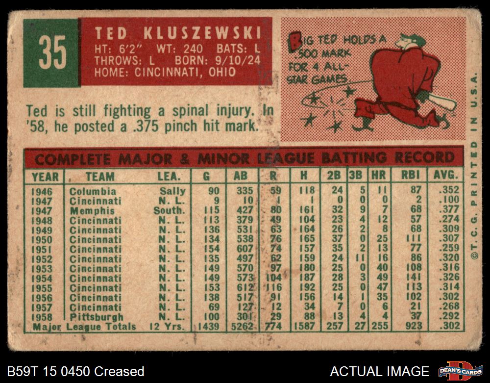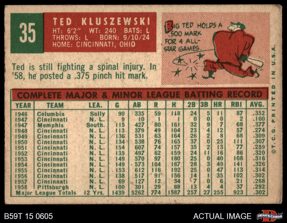 1959 Topps #35 Ted Kluszewski 1.5 - FAIR