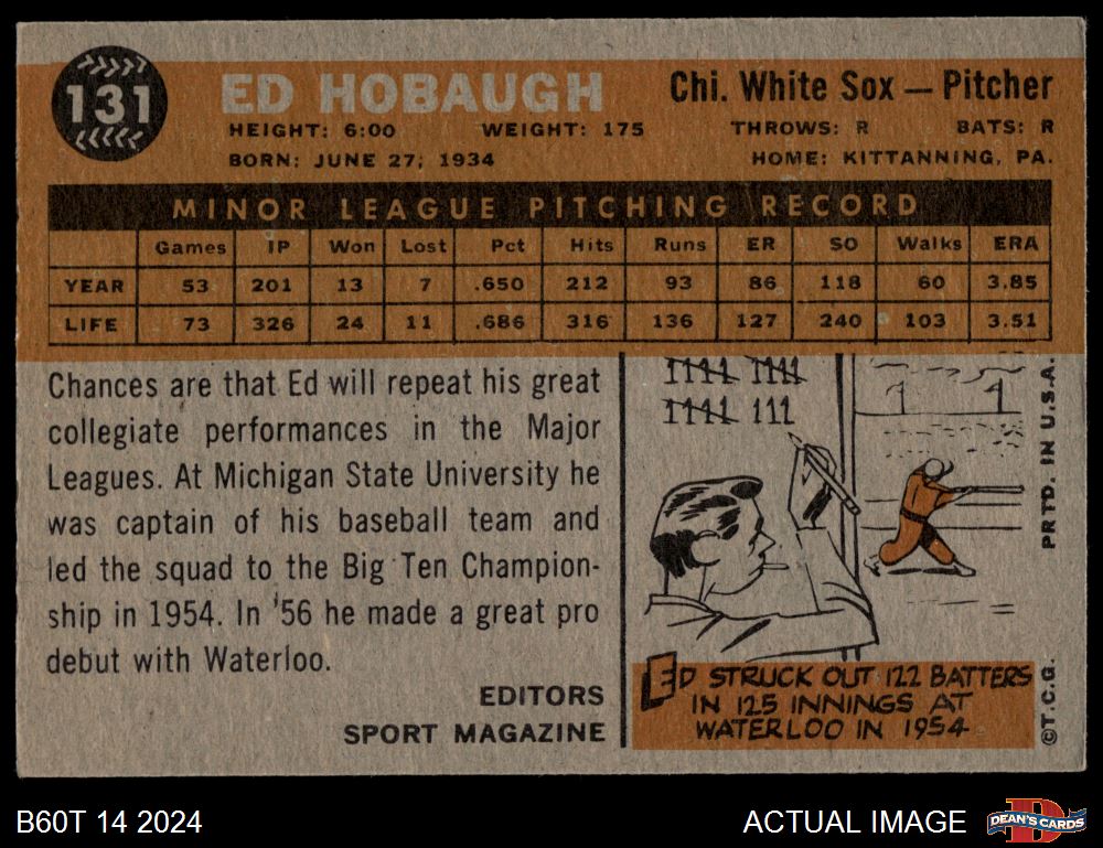 1960 Topps #131 - Ed Hobaugh Rookie Star 4 - VG/EX