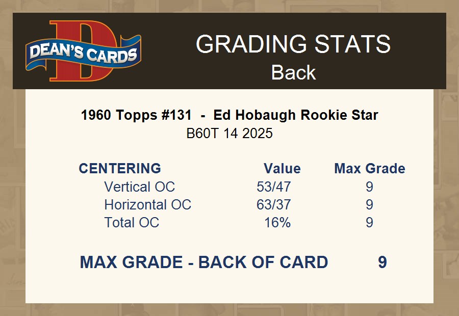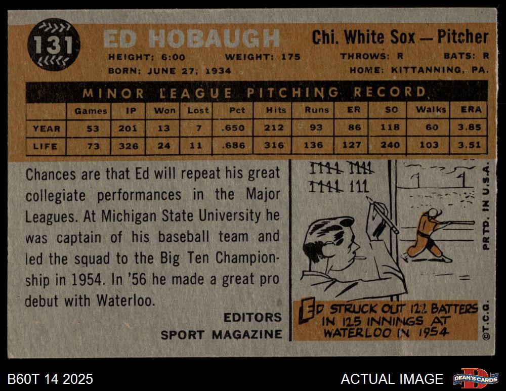 1960 Topps #131 - Ed Hobaugh Rookie Star 5 - EX