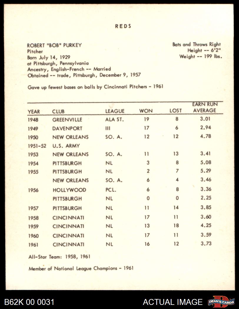 1962 Kahn's SIG Bob Purkey 8 - NM/MT