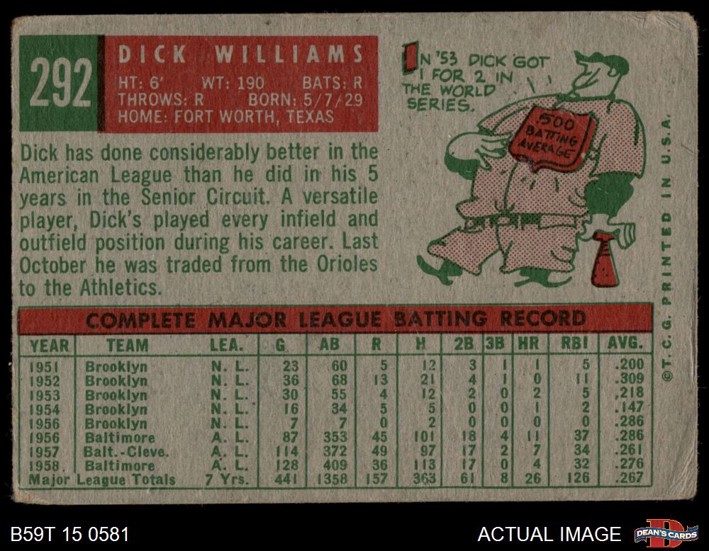 1959 Topps #292 Dick Williams 1.5 - FAIR