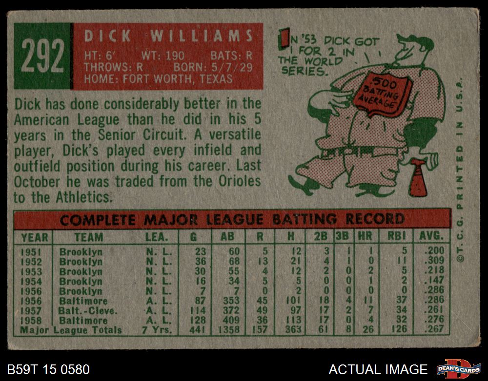 1959 Topps #292 Dick Williams 3.5 - VG+