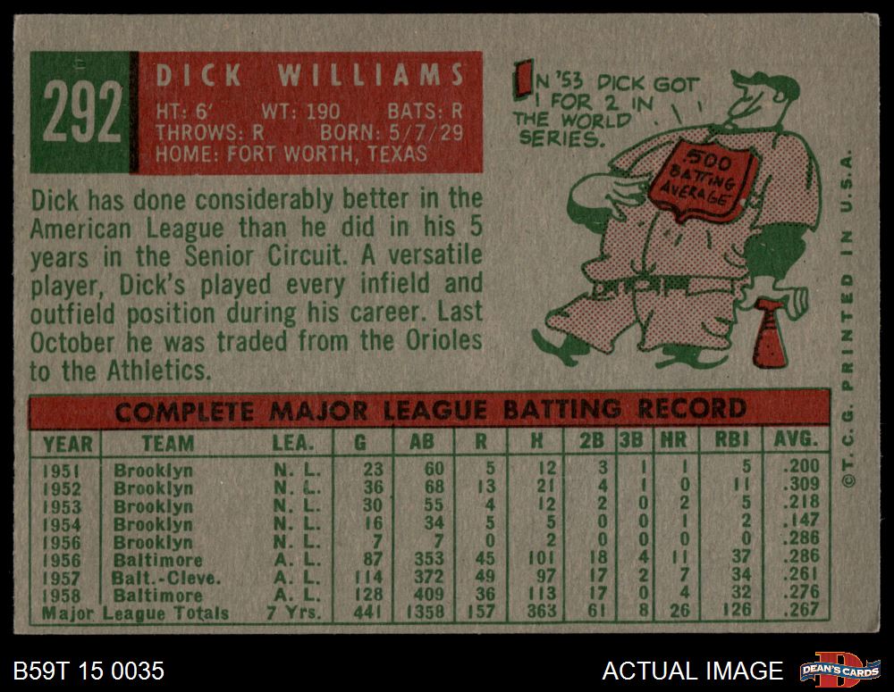 1959 Topps #292 Dick Williams 4 - VG/EX