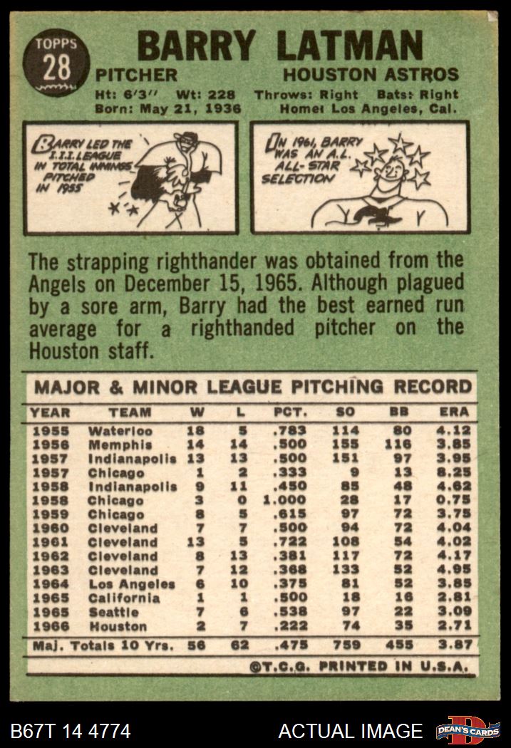 1967 Topps #28 Barry Latman