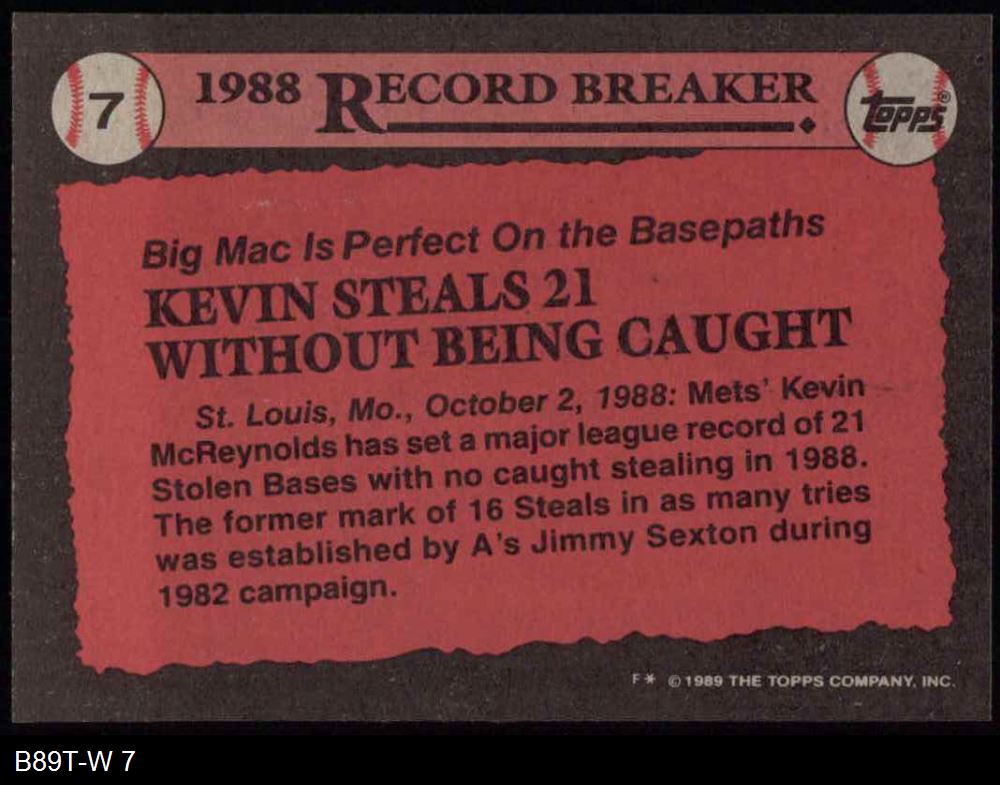 1989 Topps #7 - Kevin McReynolds Record Breaker 8 - NM/MT