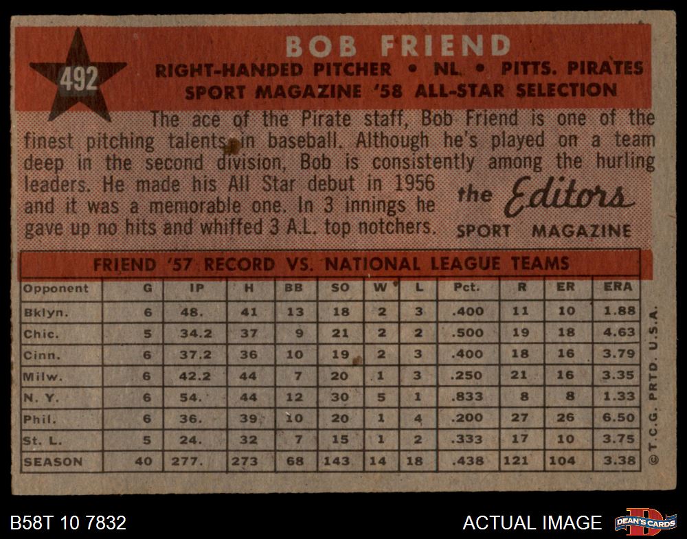 1958 Topps Baseball Cards (8,876 available)1958 Topps Pirates (624 available)