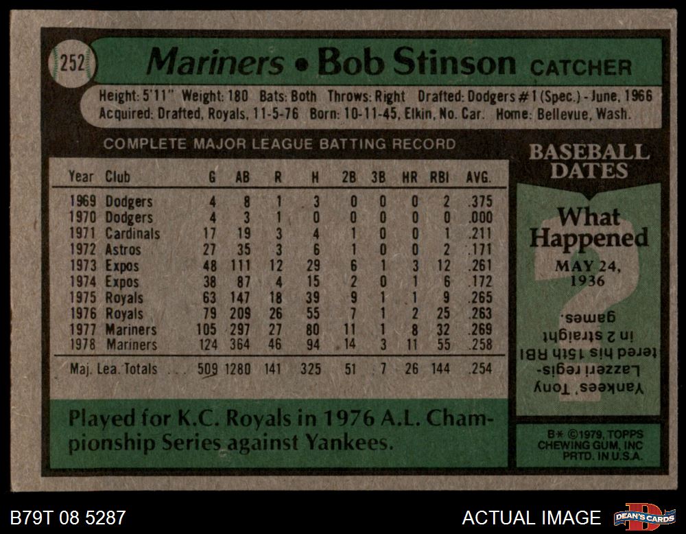 1979 Topps #252 Bob Stinson 4 - VG/EX
