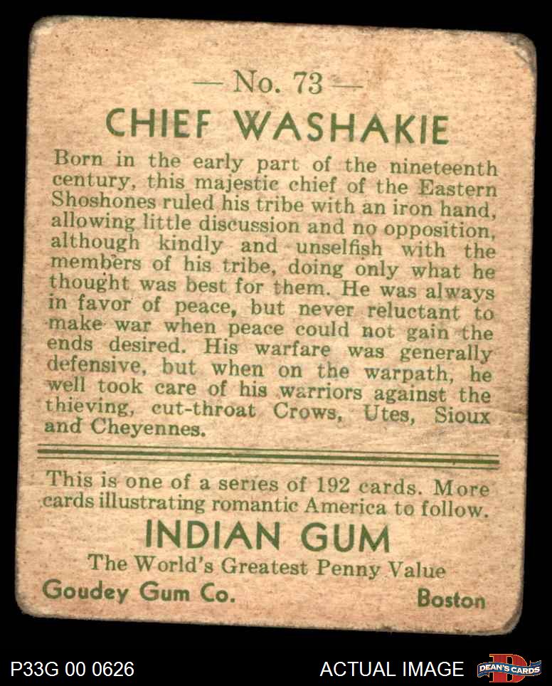 1933 Goudey Indian Gum #73 Chief Washakie AUTHENTIC