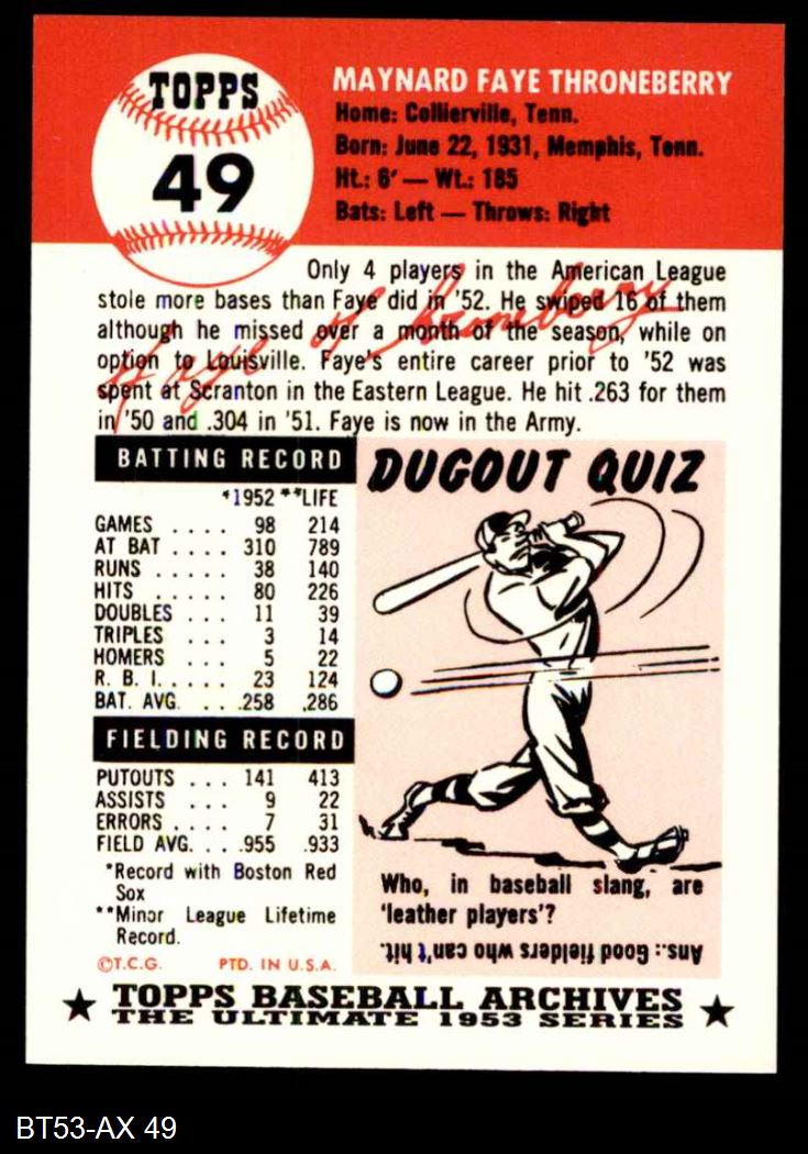 1953 Topps Archives #49 Faye Throneberry 8 - NM/MT