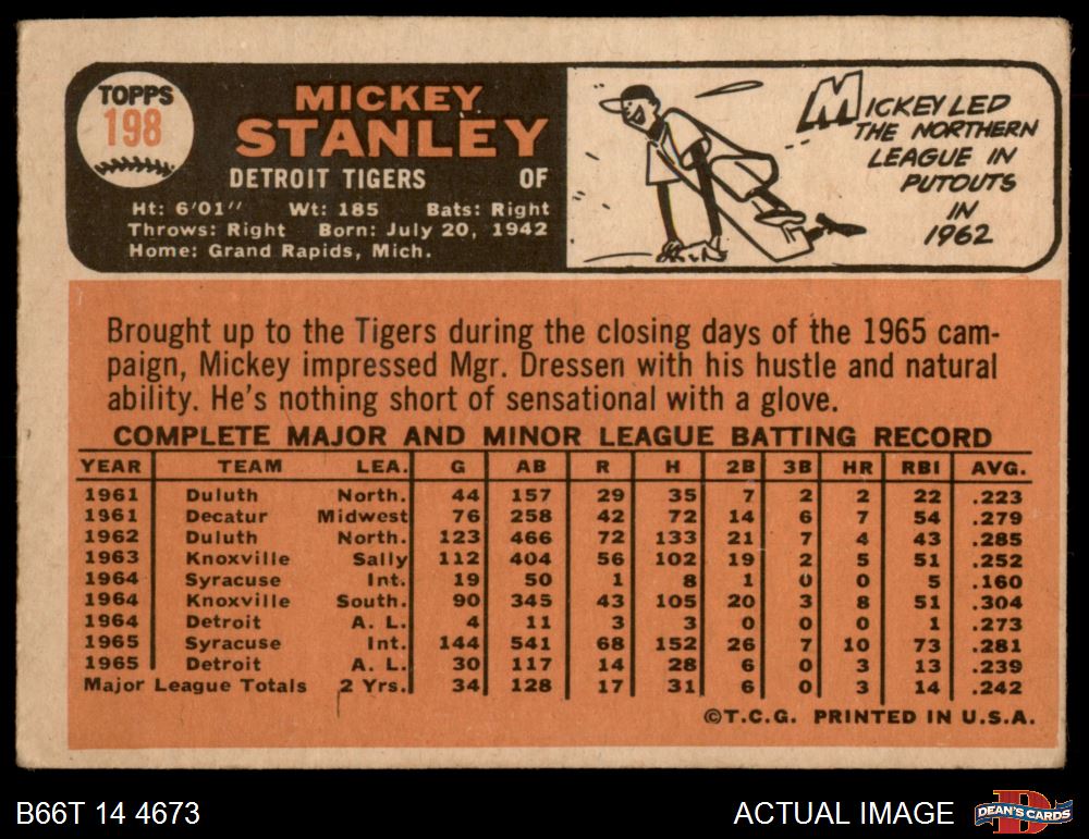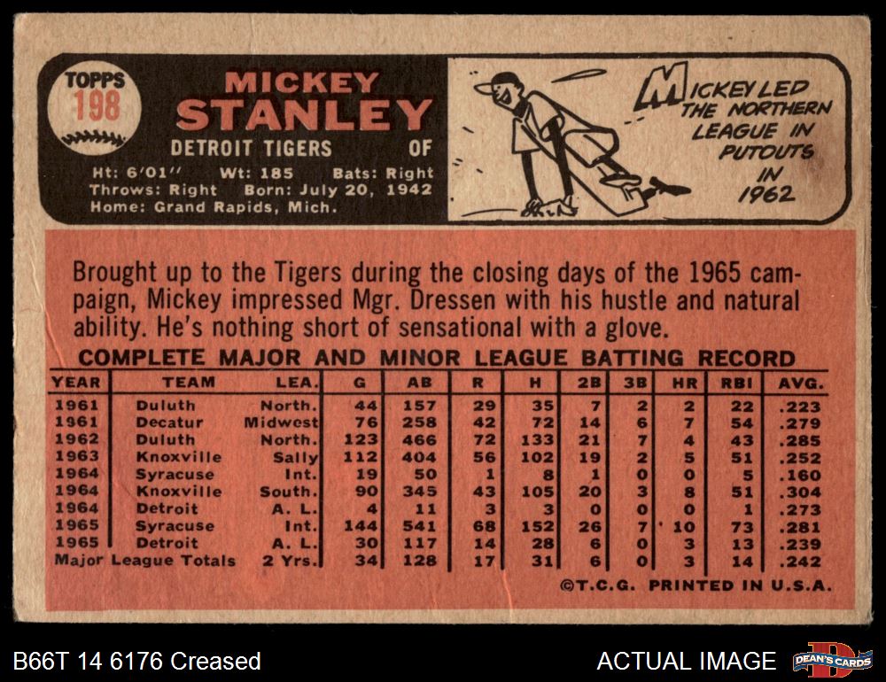 1966 Topps #198 Mickey Stanley 1 - POOR