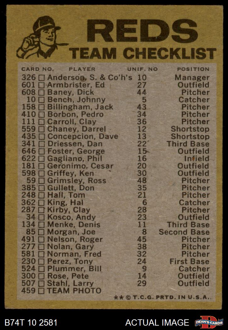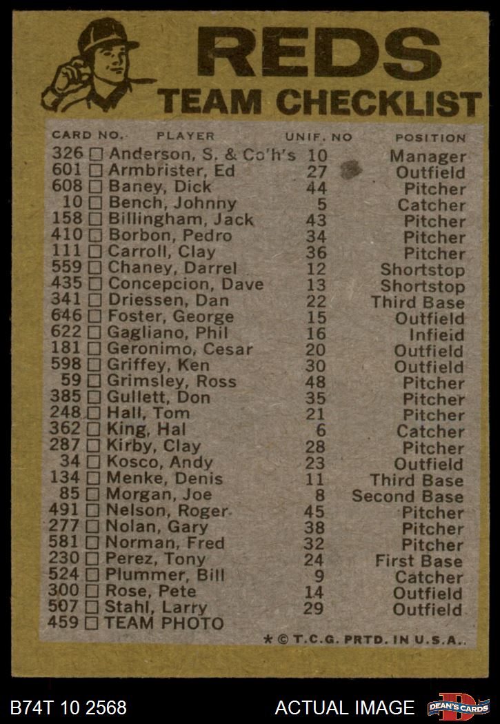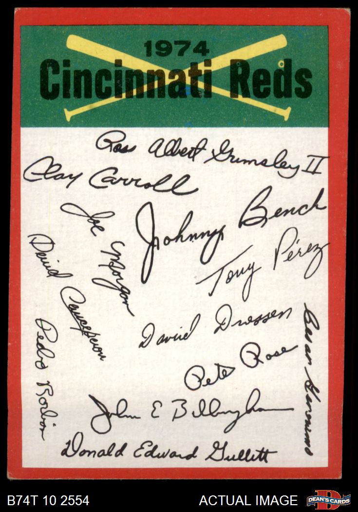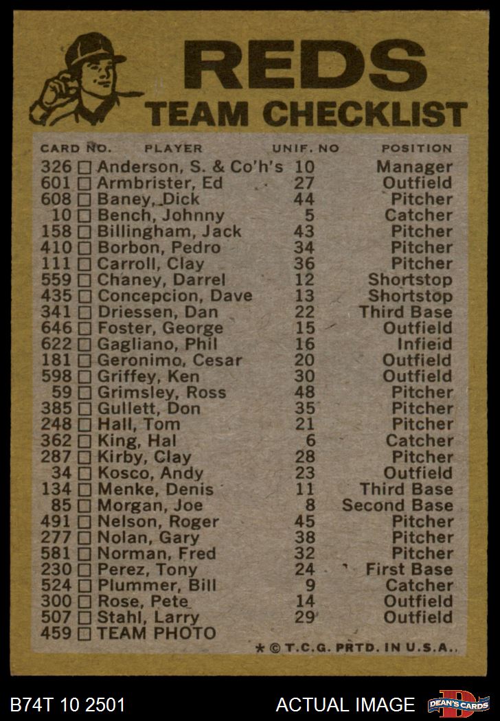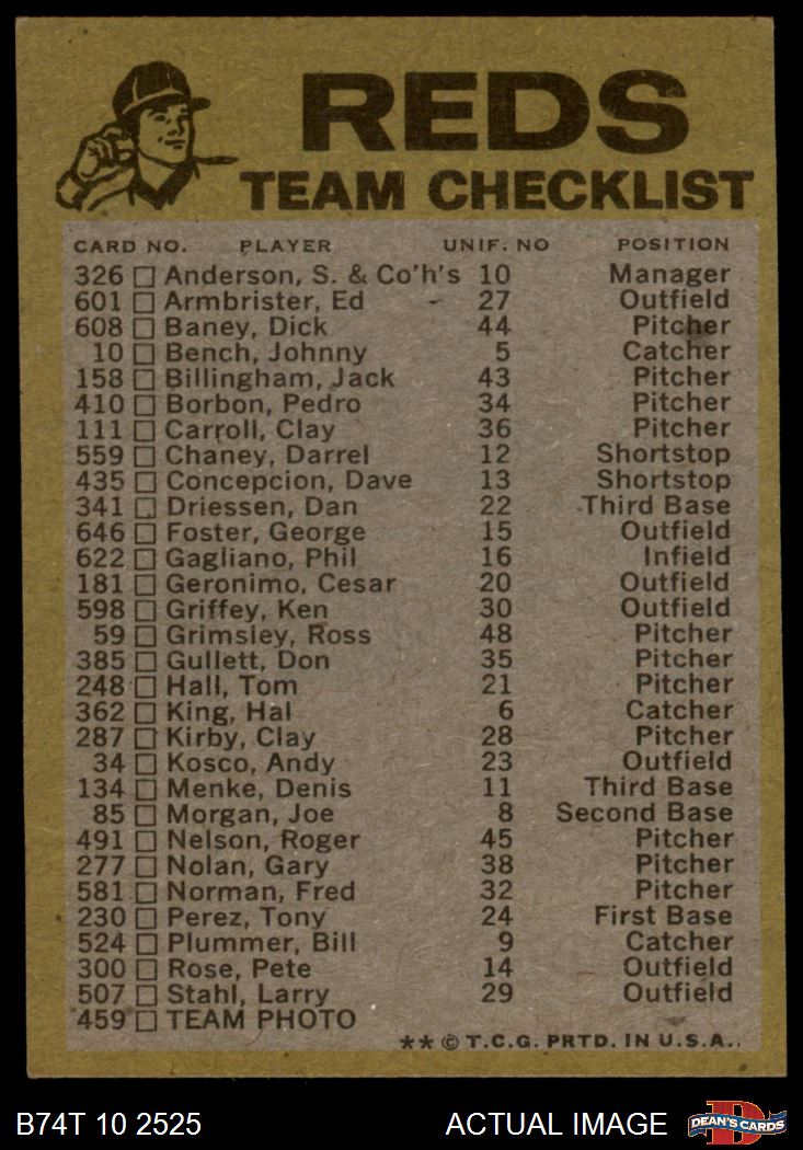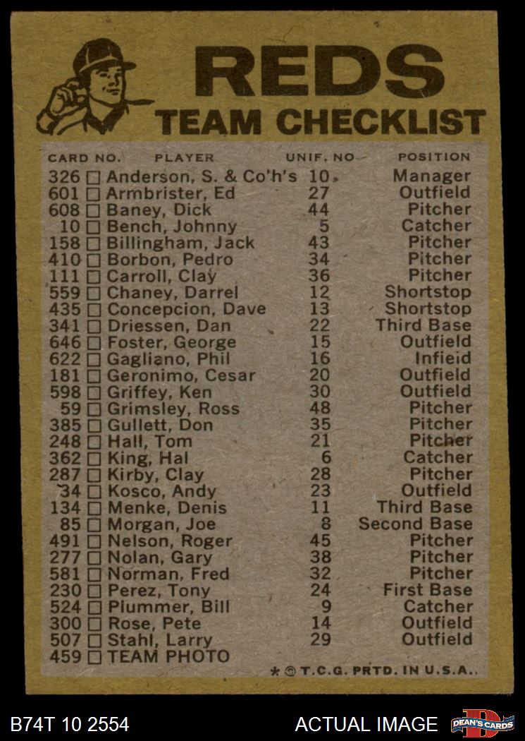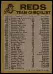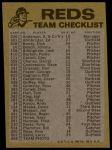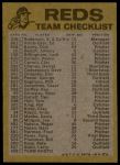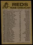 1974 Topps Red Team Checklist Cincinnati Reds Red Team Checklist