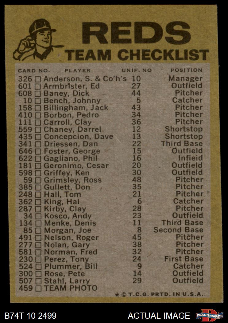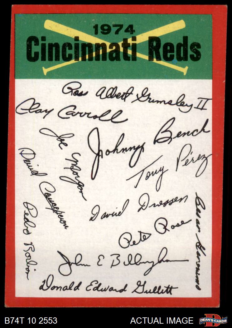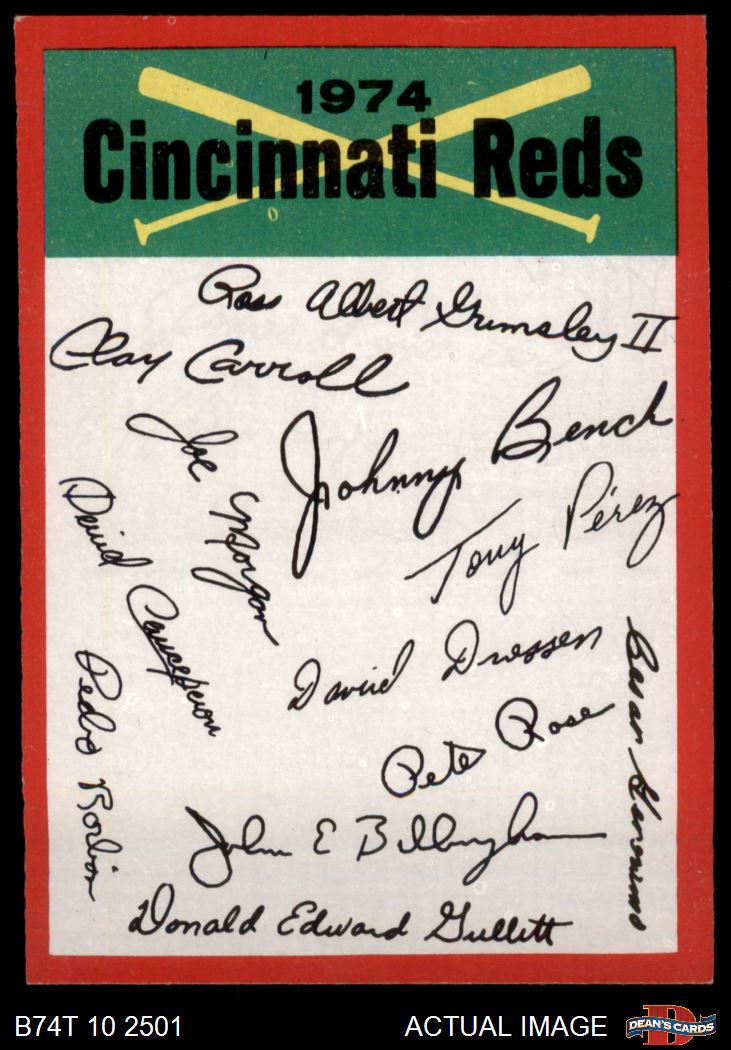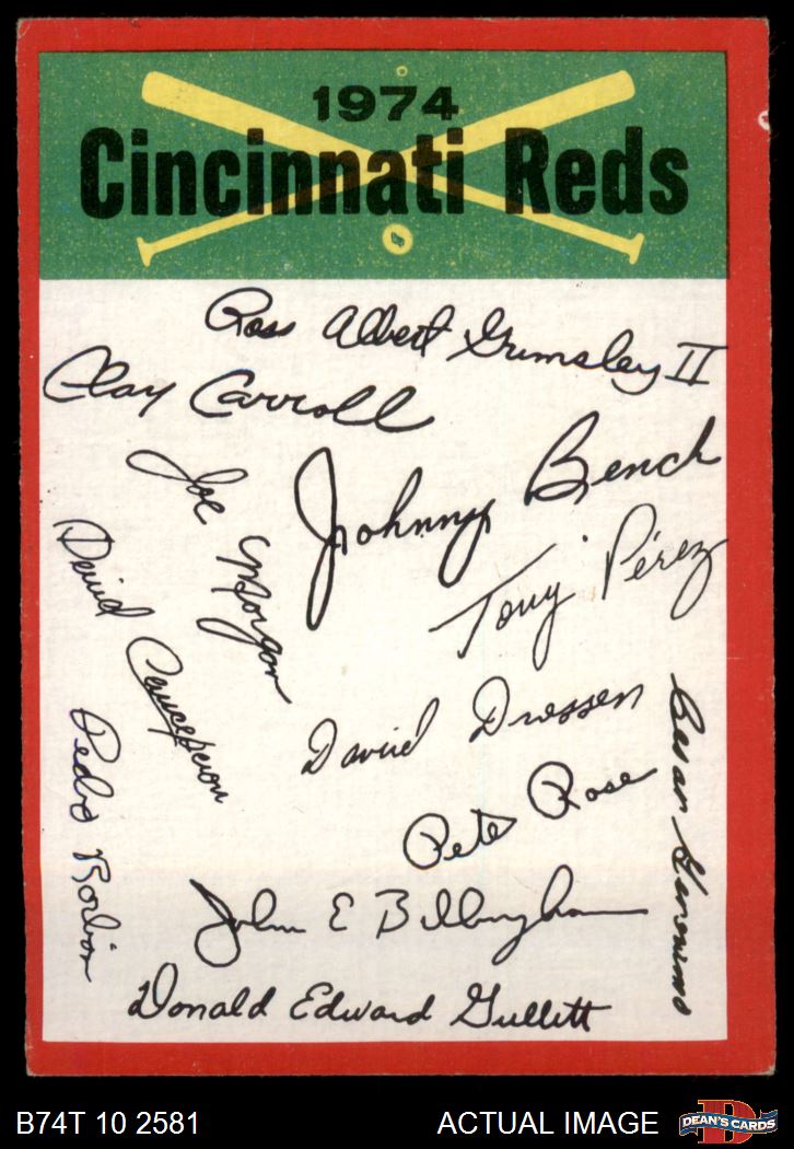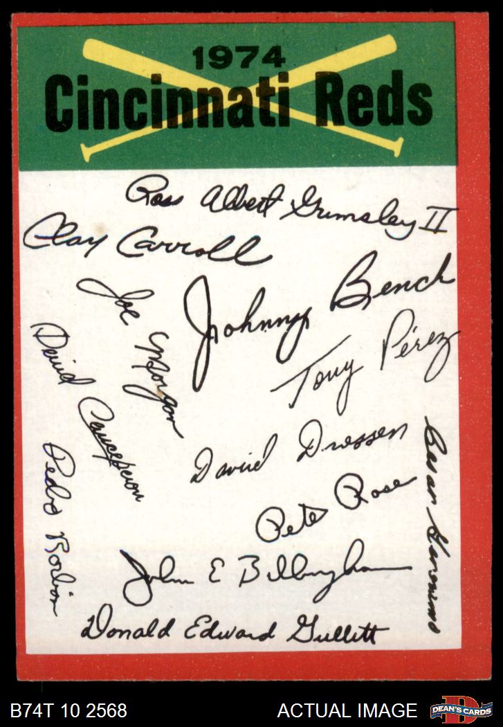 1974 Topps Red Team Checklist Cincinnati Reds Red Team Checklist