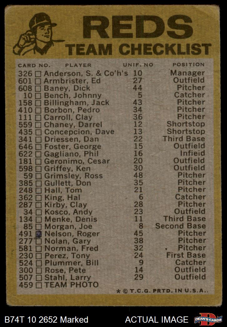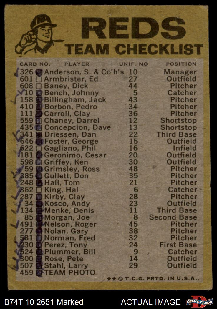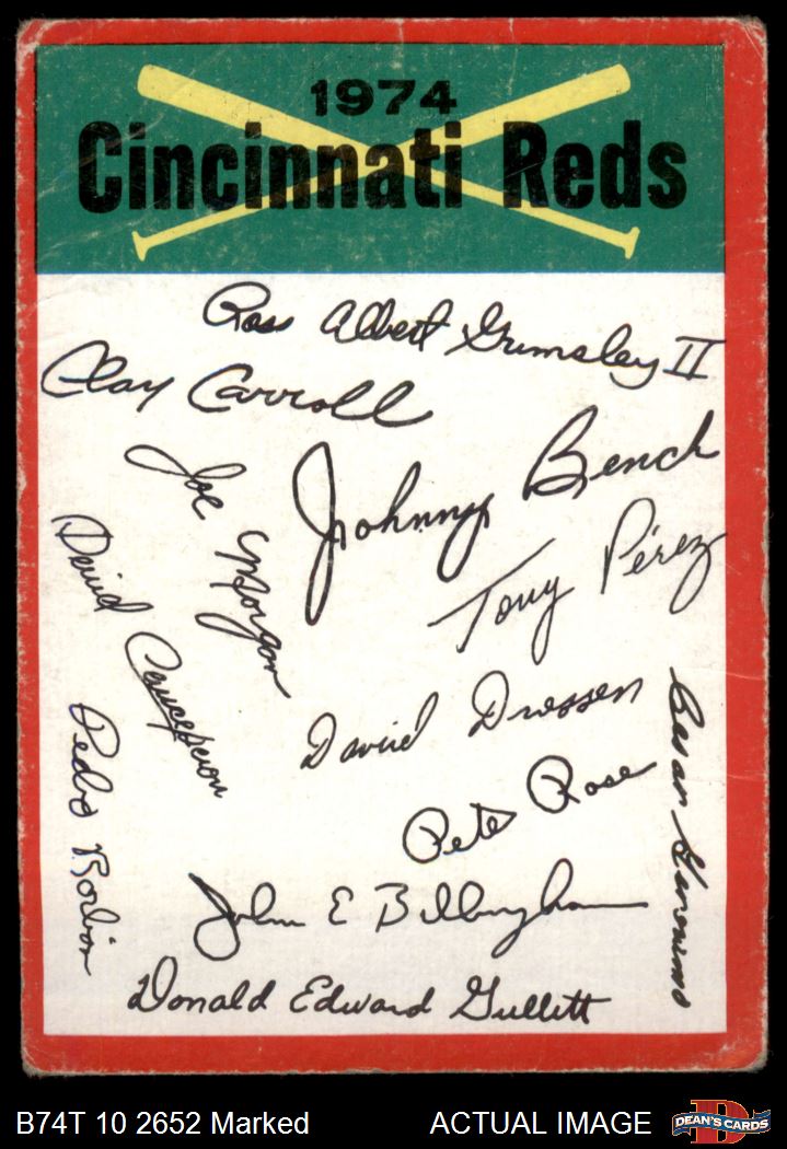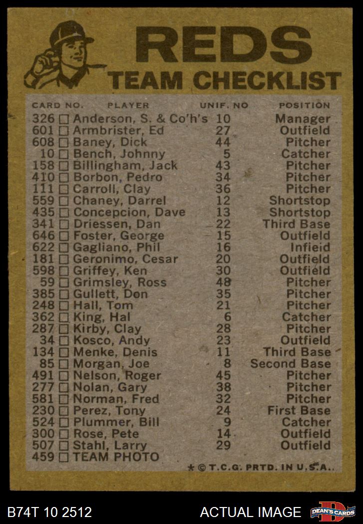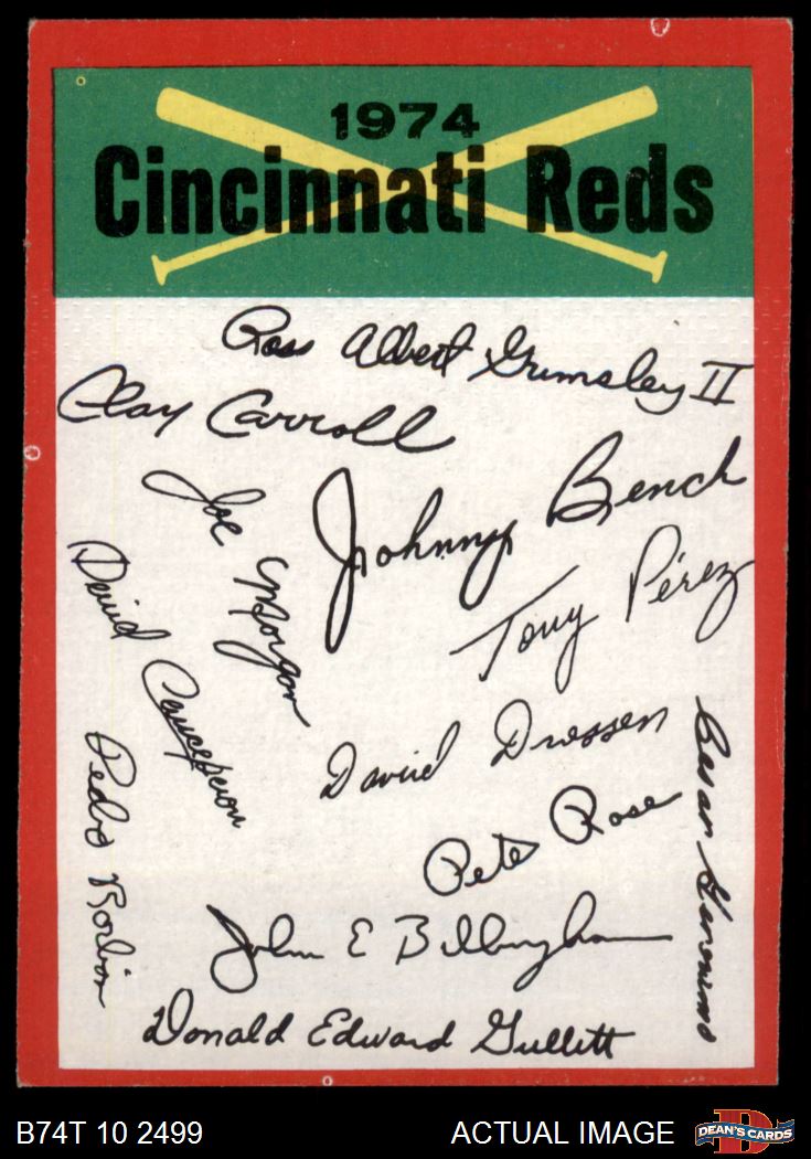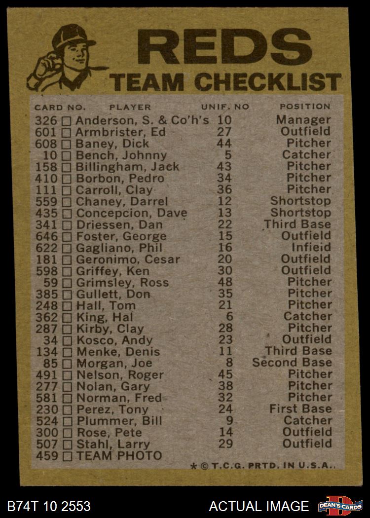 1974 Topps Red Team Checklist Cincinnati Reds Red Team Checklist
