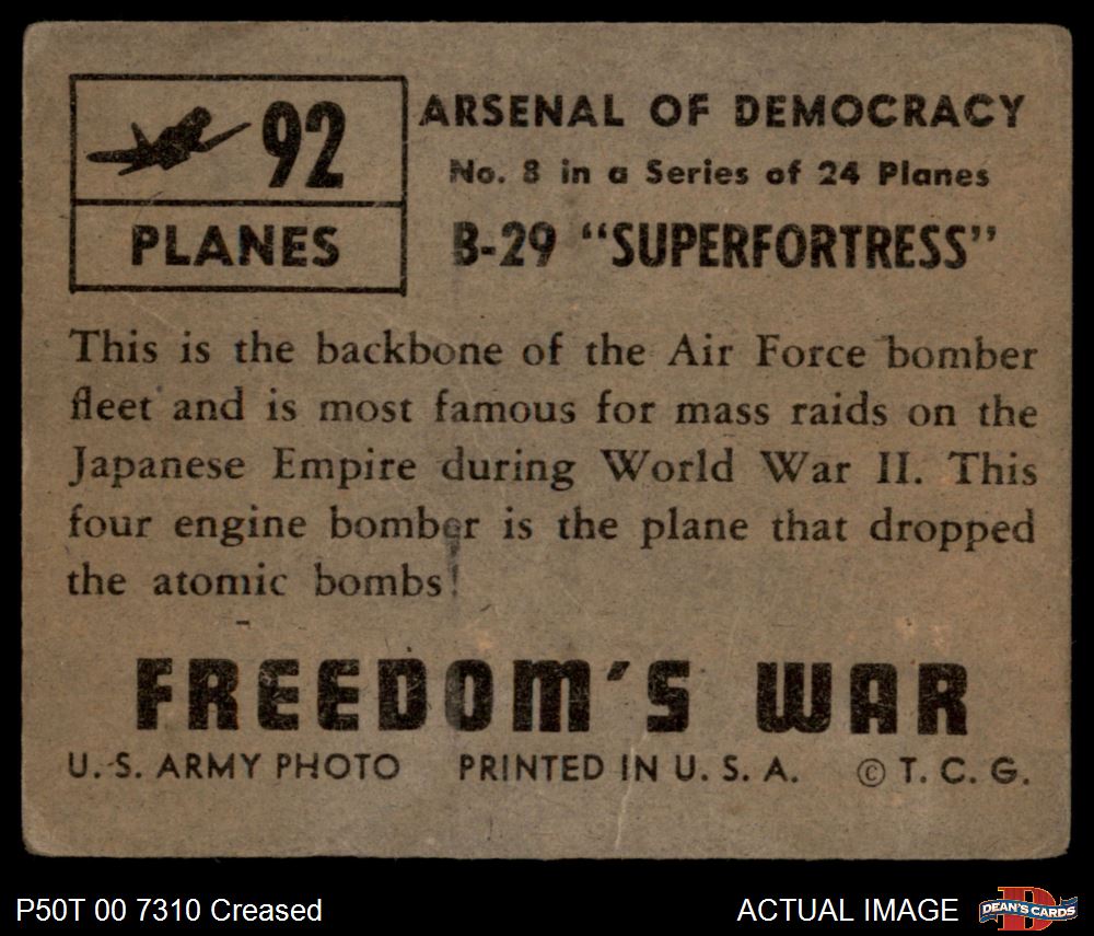 1950 Topps Freedoms War #92  B-29 Superfortress Front Thumbnail