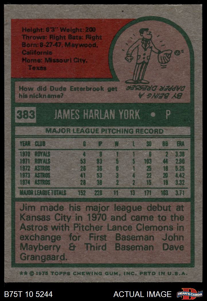 1975 Topps #383 Jim York
