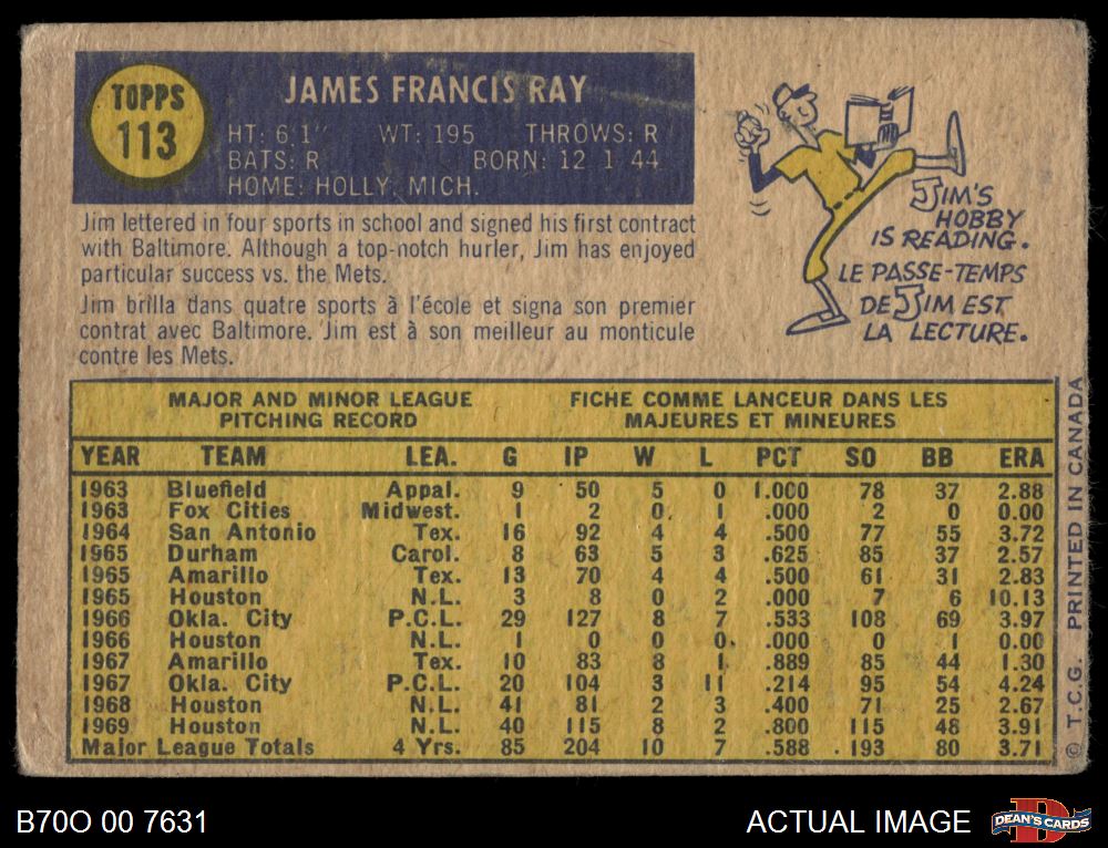 1970 O-Pee-Chee #113 Jim Ray 1 - POOR