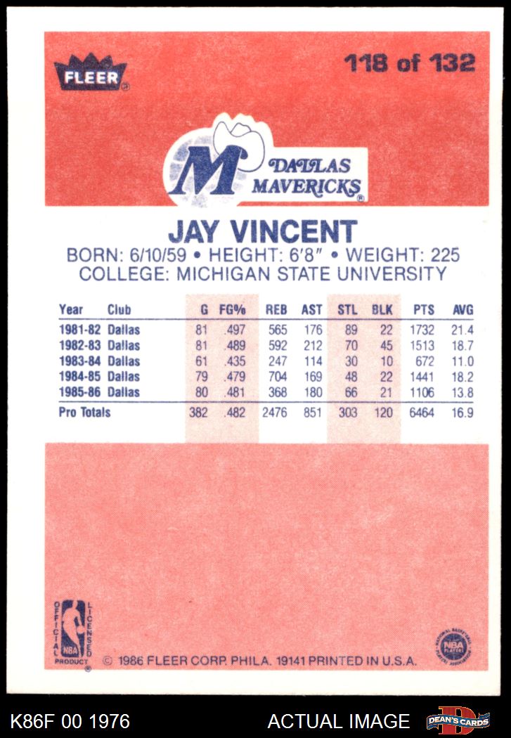 1986 Fleer #118 Jay Vincent