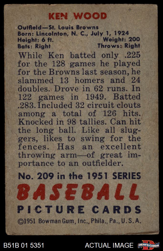 1951 Bowman #209 Ken Wood 2 - GOOD