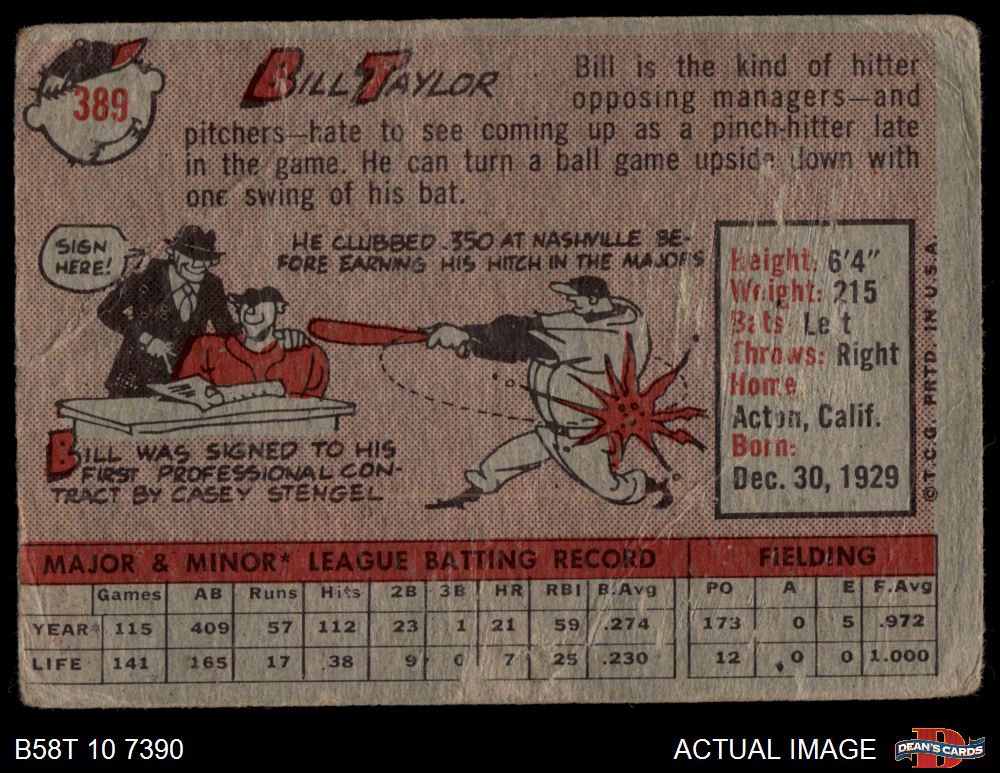 1958 Topps #389 Bill Taylor AUTHENTIC