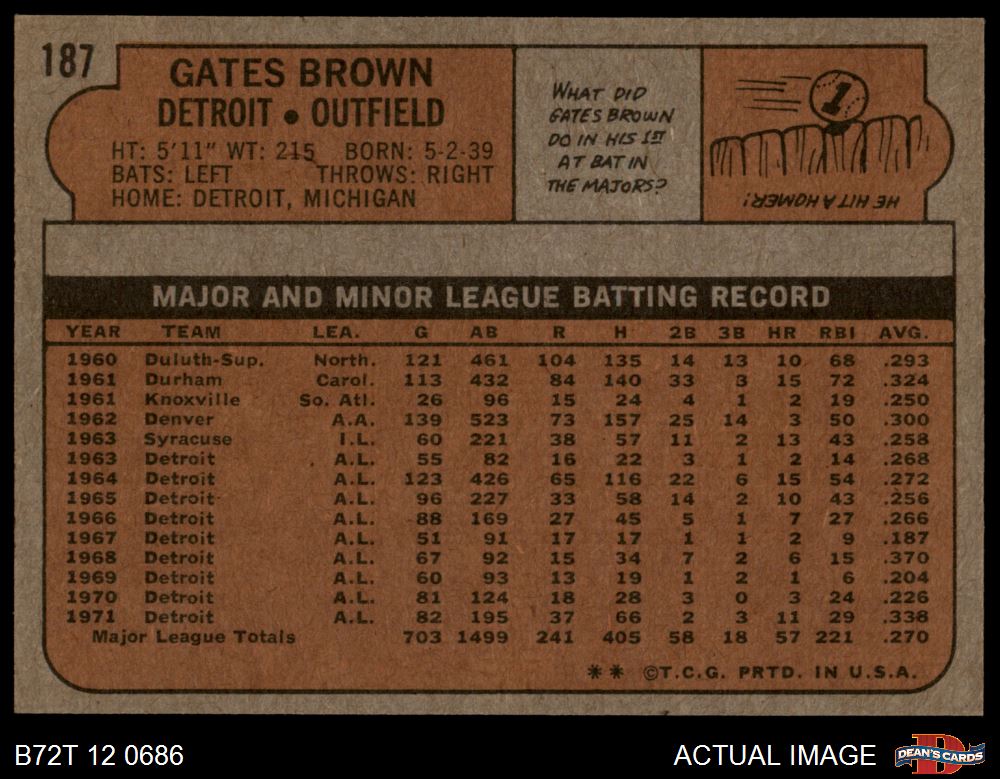 1972 Topps #187 Gates Brown 6.5 - EX/MT+