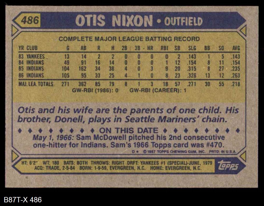 1987 Topps #486 Otis Nixon