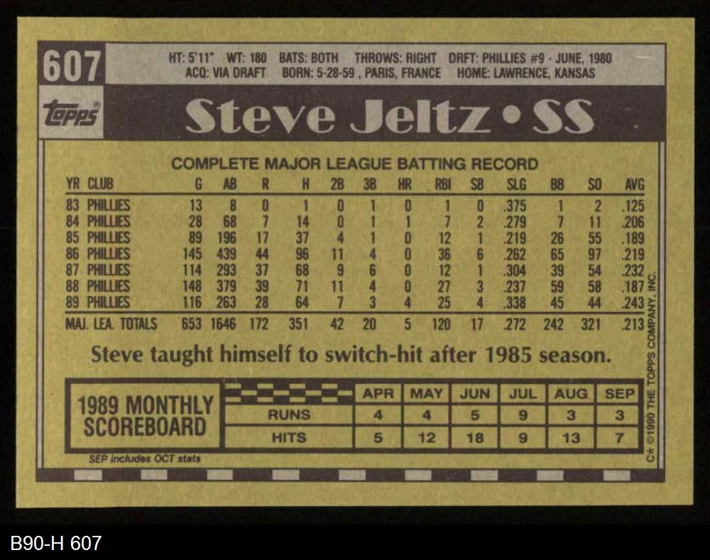 1990 Topps #607 Steve Jeltz 8 - NM/MT