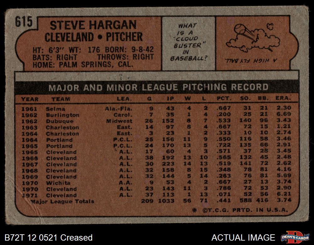 1972 Topps #615 Steve Hargan Front Thumbnail