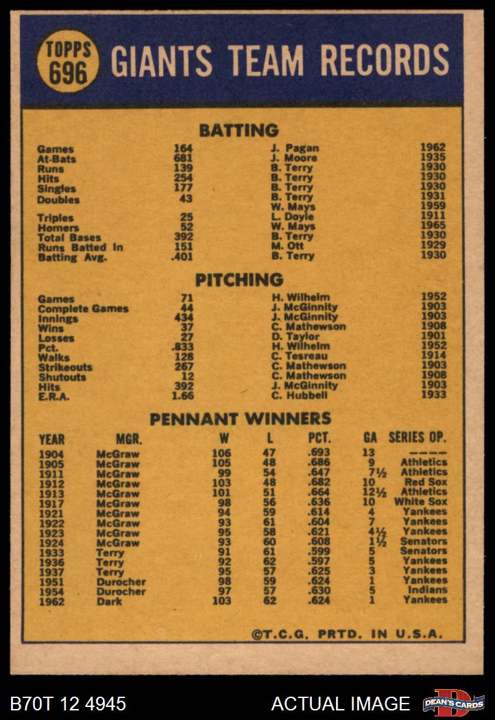 1970 Topps #696 Giants Team