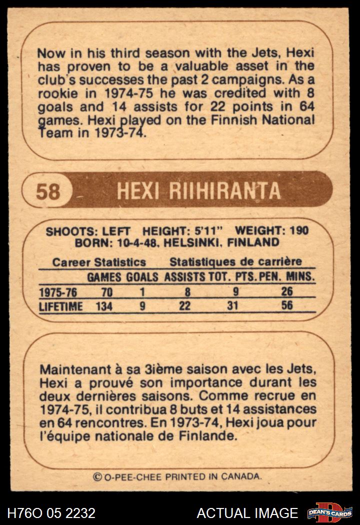 1976 O-Pee-Chee WHA #58 Heikki Riihiranta 7 - NM