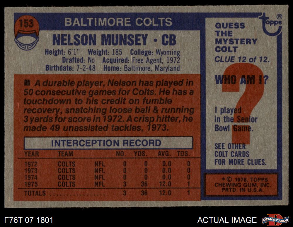 1976 Topps #153 Nelson Munsey 4 - VG/EX