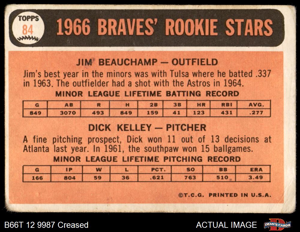 1966 Topps #84 - Jim Beauchamp / Dick Kelley Braves Rookies 1 - POOR