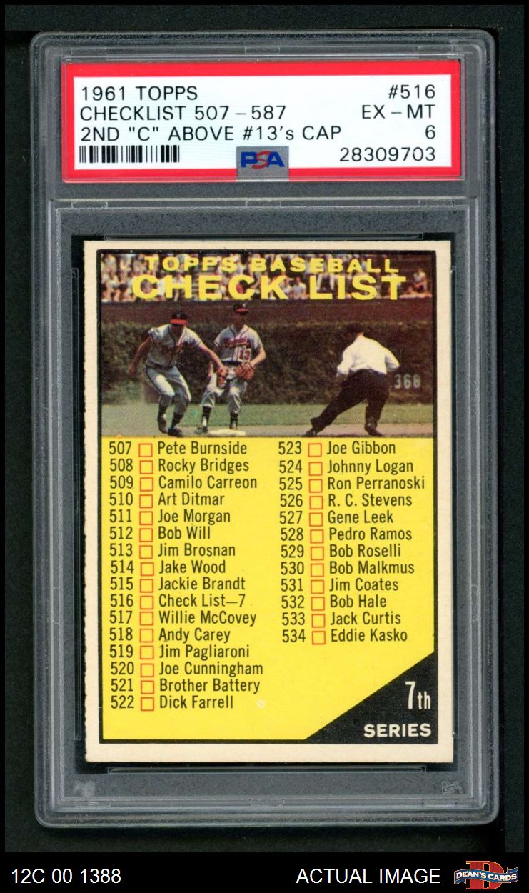 1961 Topps #516 ABV Checklist 7 PSA 6 - EX/MT