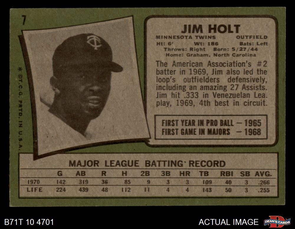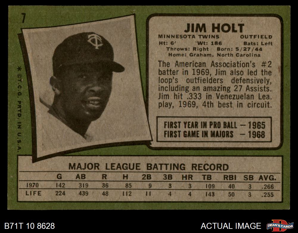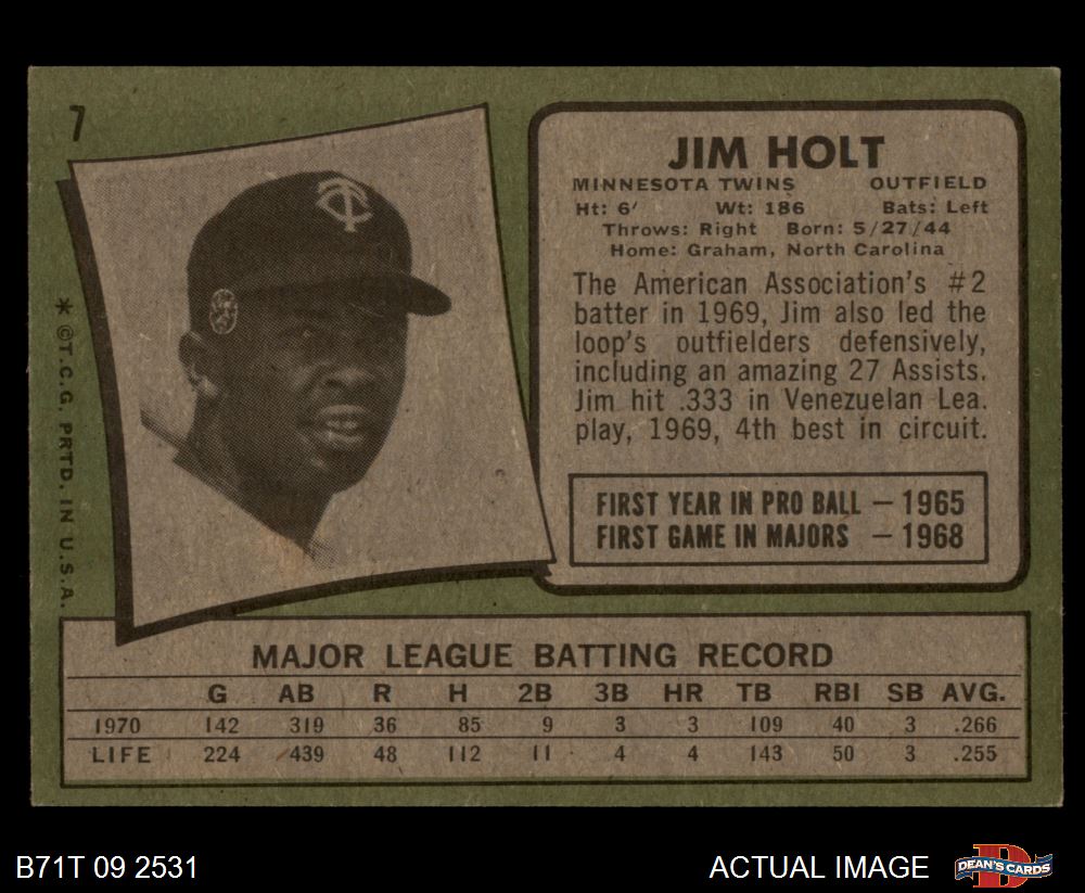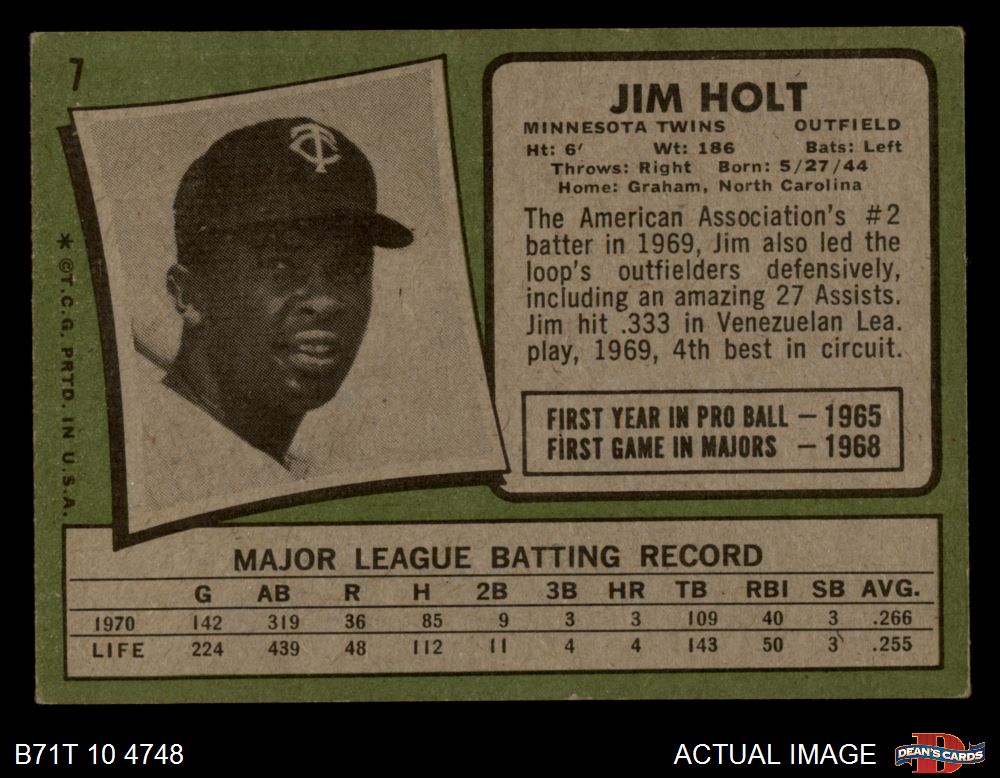 1971 Topps #7 Jim Holt 6 - EX/MT