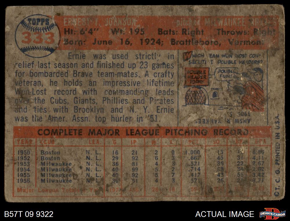 1957 Topps #333 Ernie Johnson AUTHENTIC