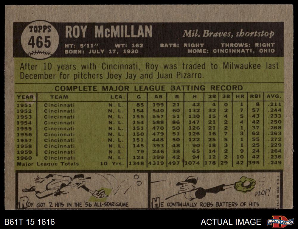 1961 Topps #465 Roy McMillan 4 - VG/EX
