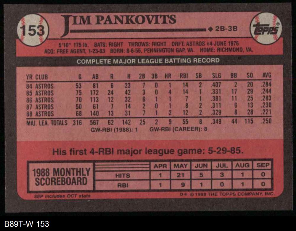 1989 Topps #153 Jim Pankovits