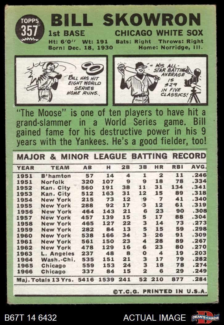 1967 Topps #357 Bill Skowron 2 - GOOD