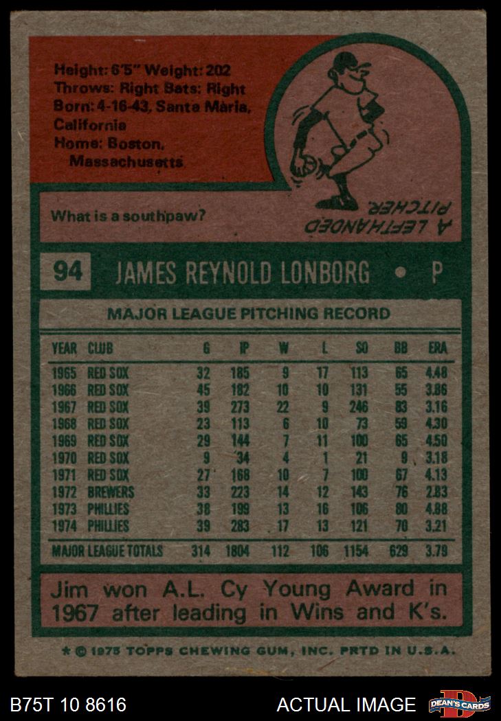 1975 Topps #94 Jim Lonborg 4 - VG/EX