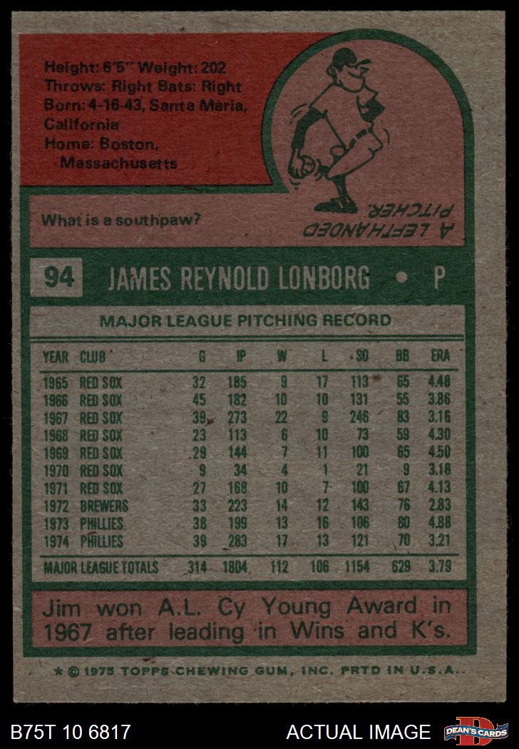1975 Topps #94 Jim Lonborg 6 - EX/MT