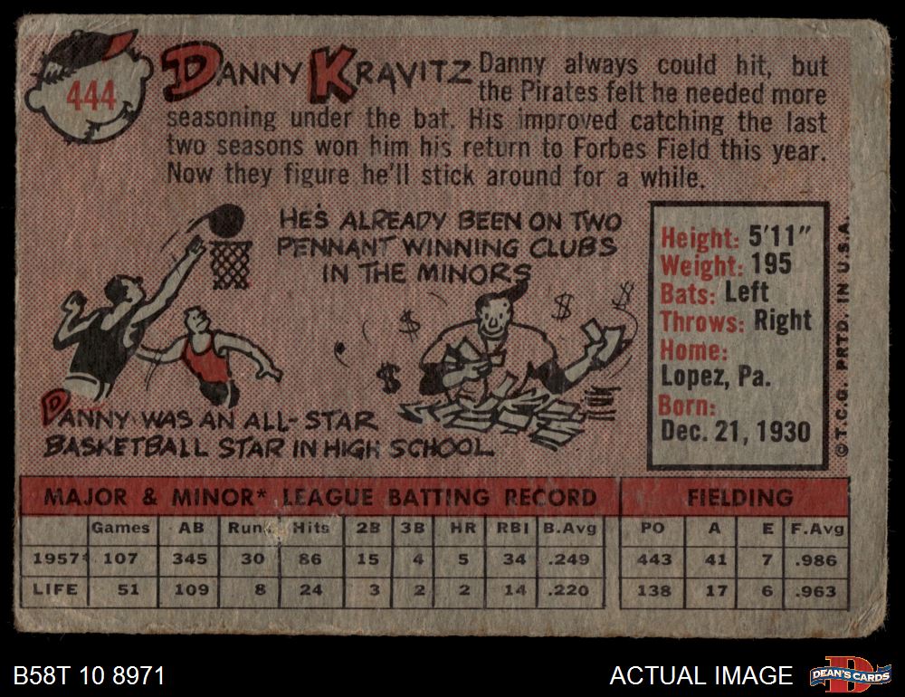1958 Topps #444 Danny Kravitz AUTHENTIC