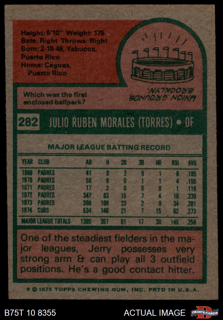 1975 Topps #282 Jerry Morales 5 - EX