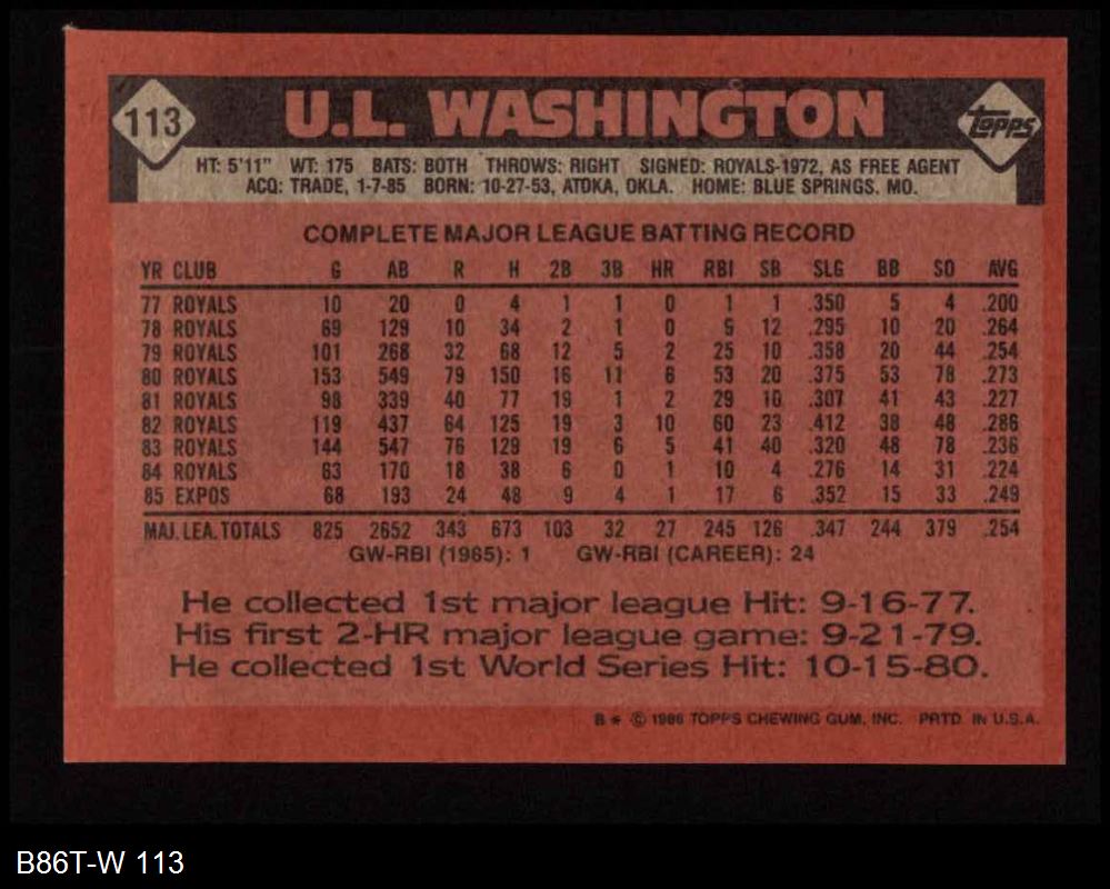 1986 Topps #113 U.L. Washington