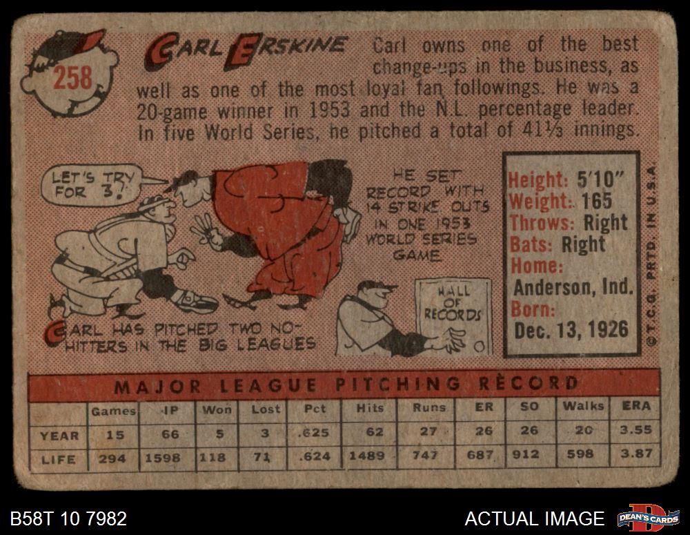 1958 Topps #258 Carl Erskine AUTHENTIC