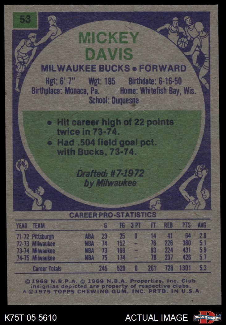 1975 Topps #53 Mickey Davis