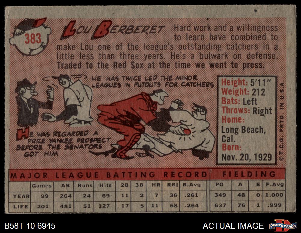 1958 Topps #383 Lou Berberet 2 - GOOD