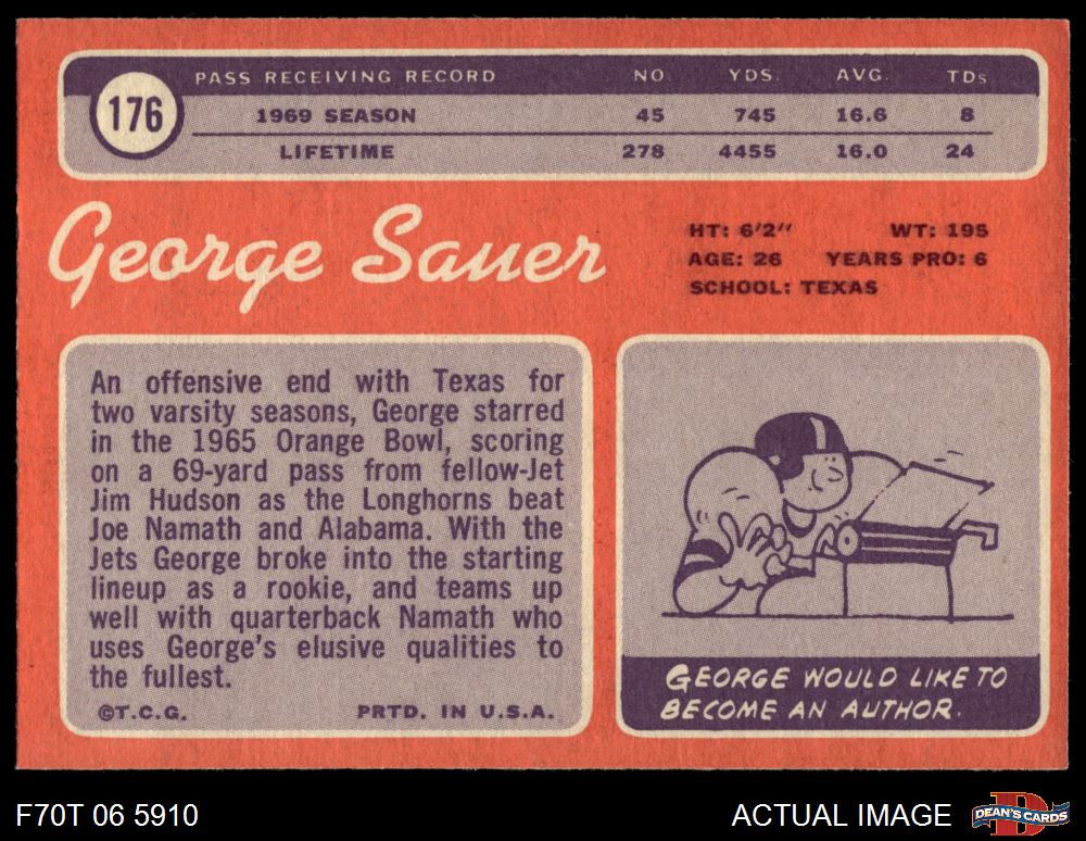 1970 Topps #176 George Sauer 8 - NM/MT